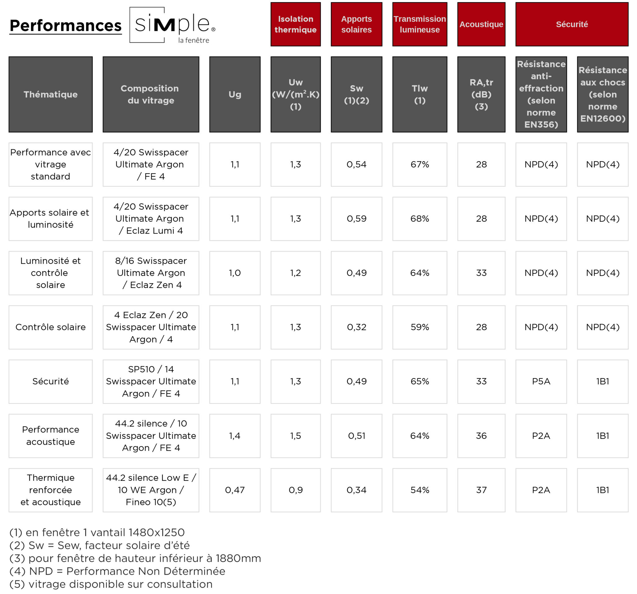 Fenêtre ou porte-fenêtre jusqu'à 2700 mm de hauteur sans imposte