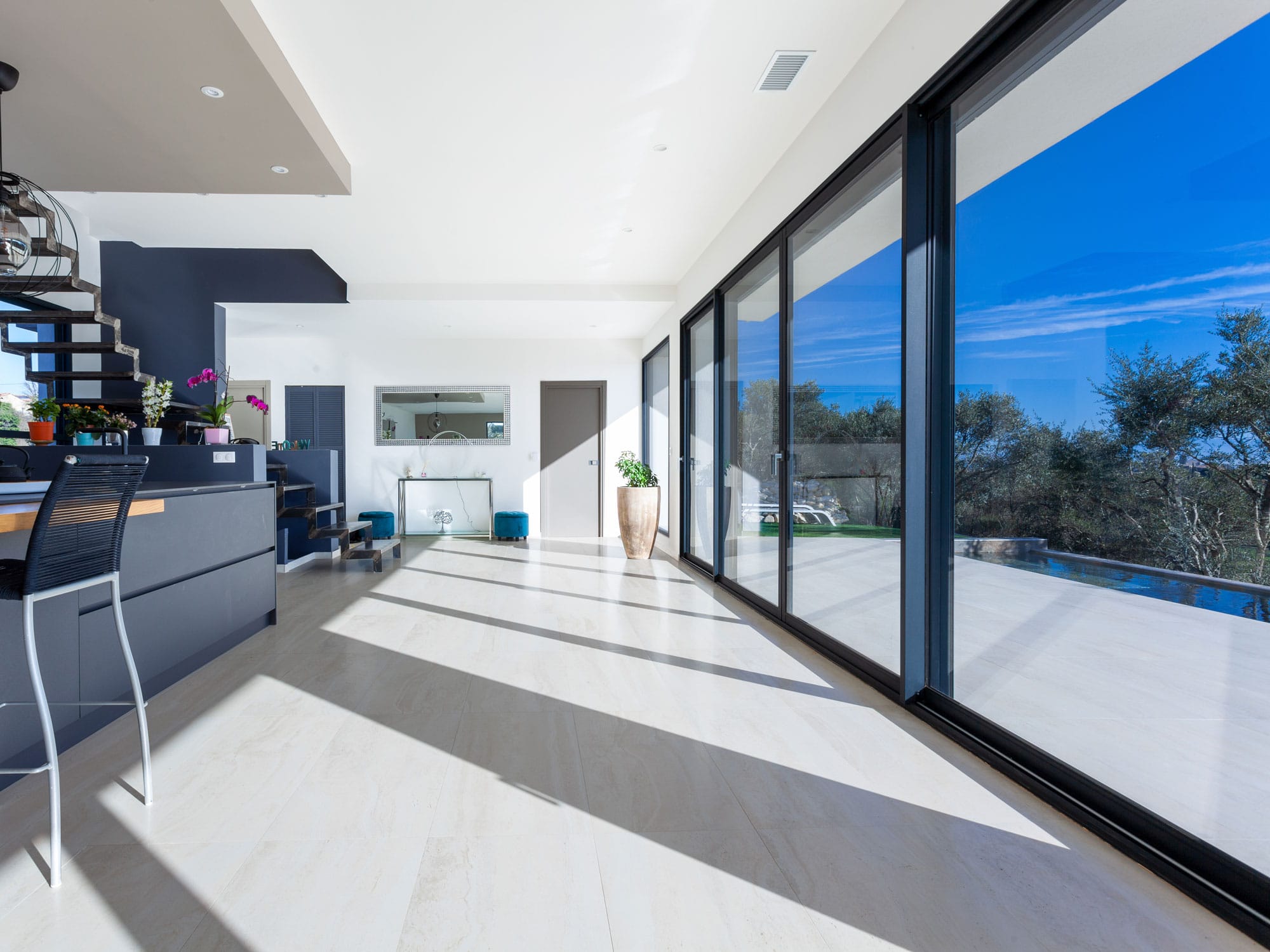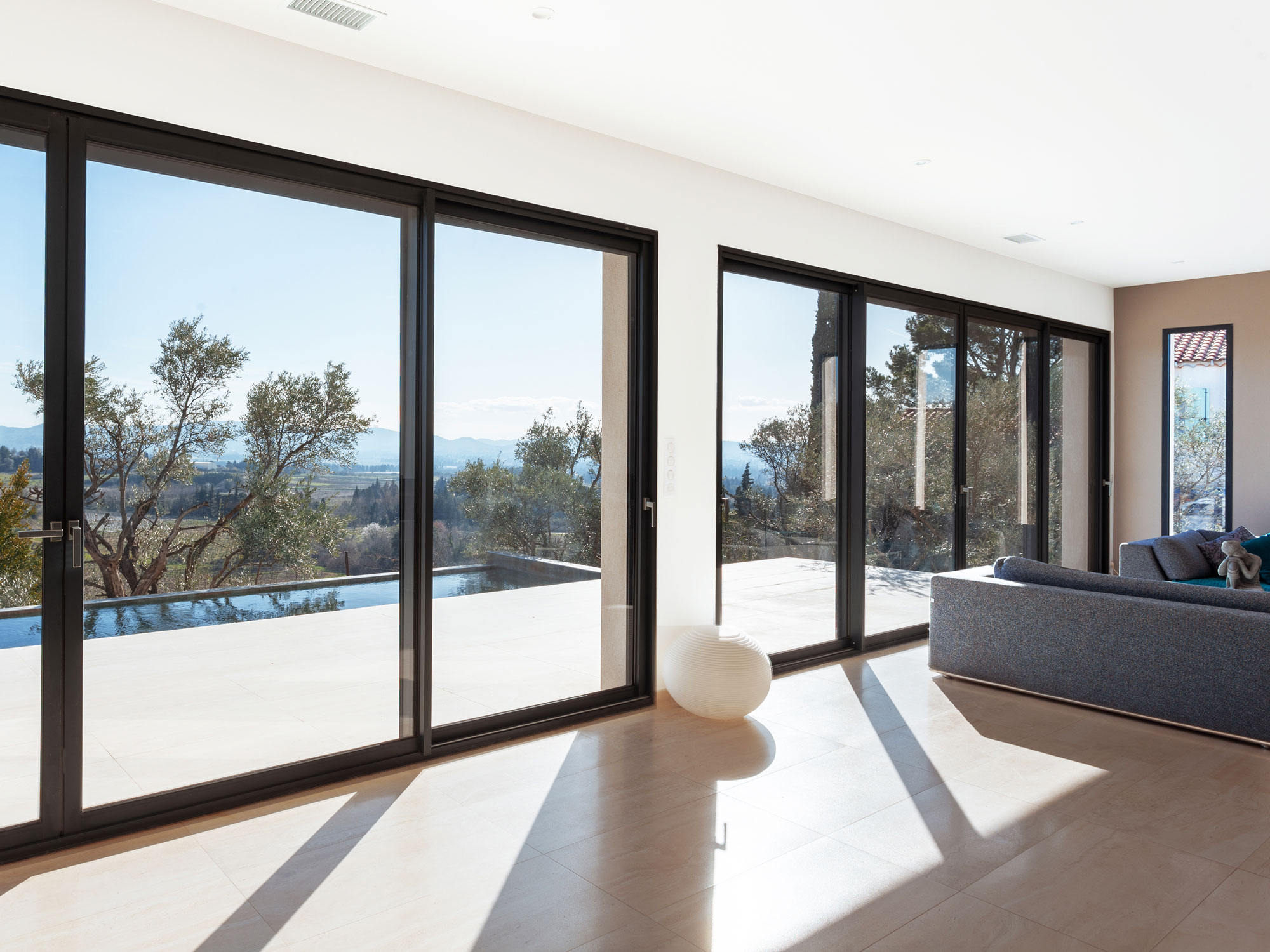 La possibilité de créer de véritables surfaces vitrées ouvrant l’intérieur sur le panorama qui s’offre à vous.