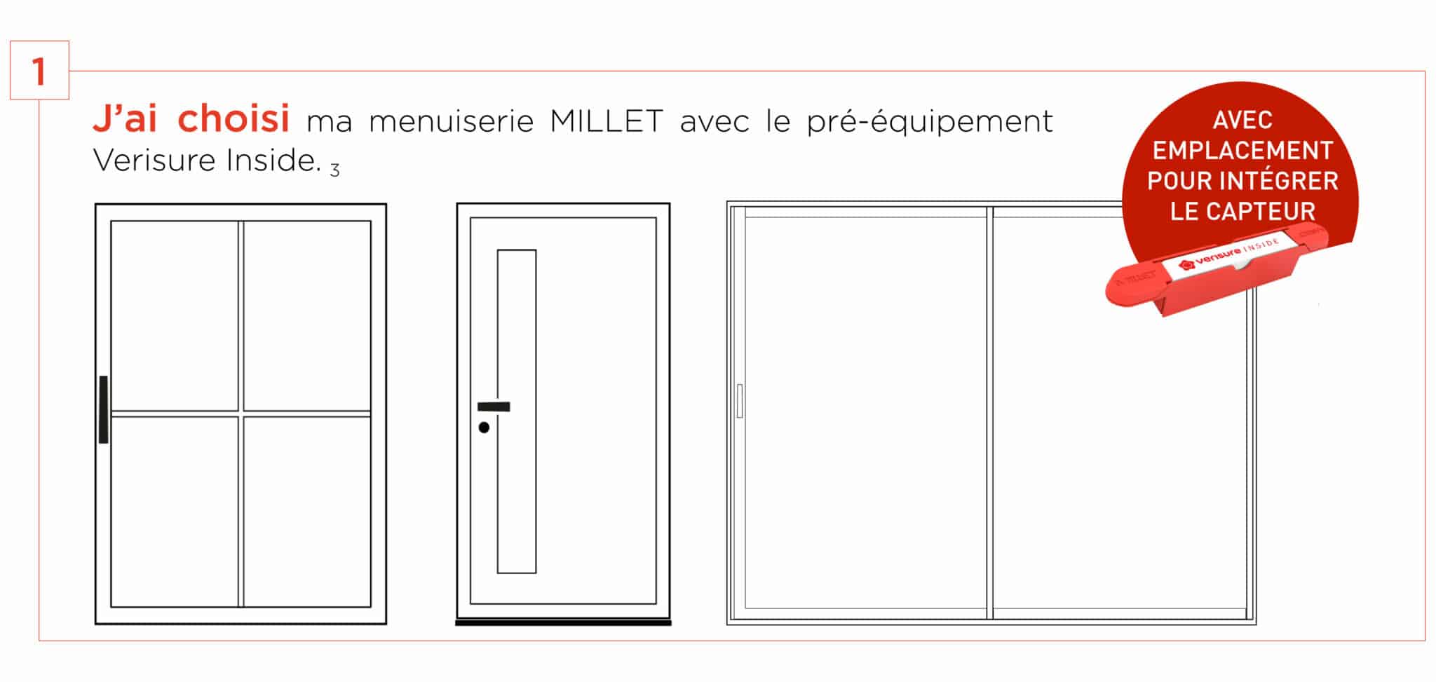 The MILLET Group has partnered with Verisure, the number one provider of monitored alarms in France (1), to enhance the security of your doors and windows. We have developed the Verisure Inside option, which allows Verisure sensors to be integrated directly into our joinery. The sensor thus becomes invisible.